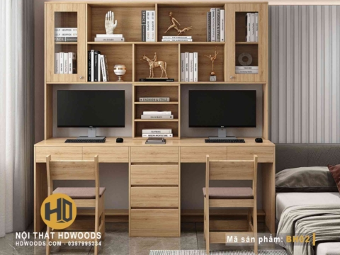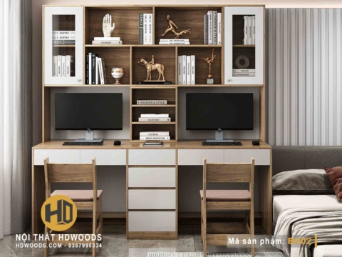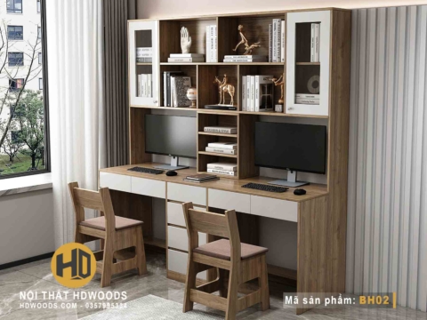 - Bàn học đôi BH02 là mẫu bàn học có 2 chỗ ngồi riêng biệt dành cho 2 bé cùng sử dụng;