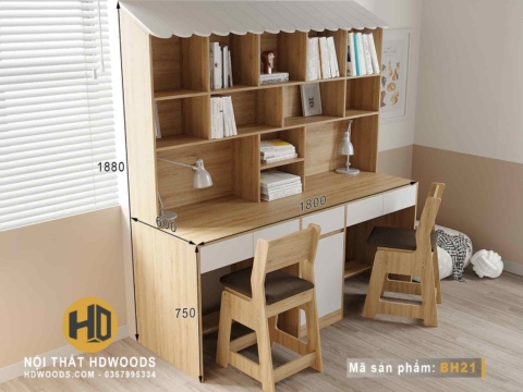 Bàn học đôi cho hai bé BH21 là lựa chọn hoàn hảo từ Nội Thất HDWoods, mang đến không gian học tập rộng rãi và tiện nghi cho các bé. Với kích thước lớn, chiều dài 1m8 và chiều rộng 60cm, bàn học đôi BH21 cung cấp không gian đủ rộng để hai bé có thể học tập thoải mái cùng nhau.