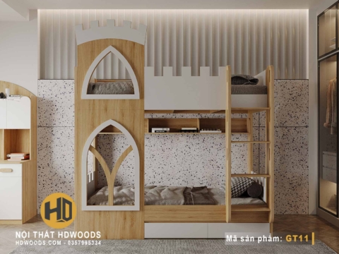 Giường Tầng Bằng Gỗ GT11 Với Thiết Kế Lâu Đài Độc Đáo