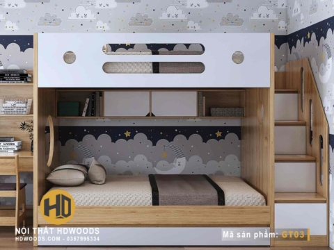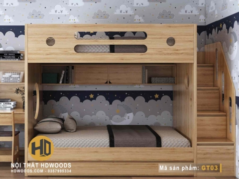 Giường tầng GT03 được thiết kế với tiêu chuẩn an toàn cao, đảm bảo cho bé yêu của bạn có môi trường ngủ và chơi đảm bảo và thoải mái nhất. Với các tính năng đa năng, giường tầng này sẽ trở thành điểm nhấn hoàn hảo cho phòng ngủ trẻ con
