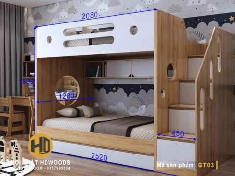 Thông số kỹ thuật Giường tầng cho bé đẹp GT03