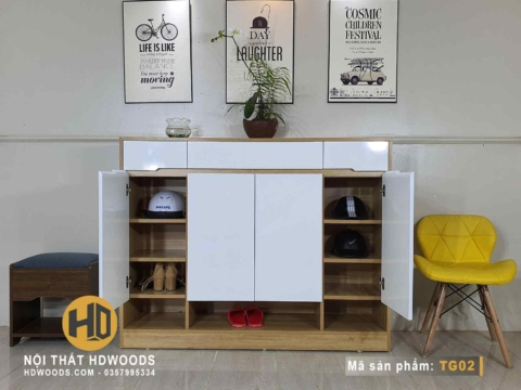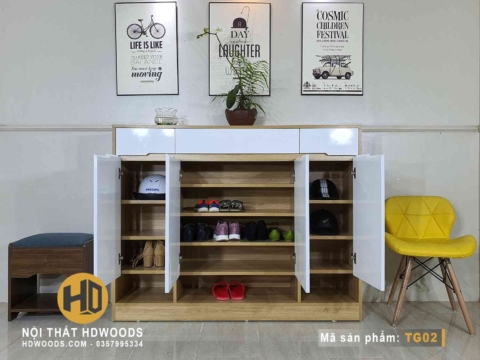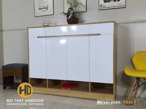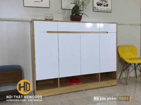 Bên cạnh kệ ti vi, ghế sofa, bàn trà thì tủ giày là một trong những vật dụng không thể thiếu đối với 1 phòng khách hiện đại. Những chiếc tủ giày được thiết kế độc đáo, tinh tế thực sự tạo nên điểm nhấn mới lạ cho căn phòng. Mẫu tủ giày đẹp TG02 của nội thất HDWoods là một mẫu thiết kế vừa hiện đại vừa tinh tế.